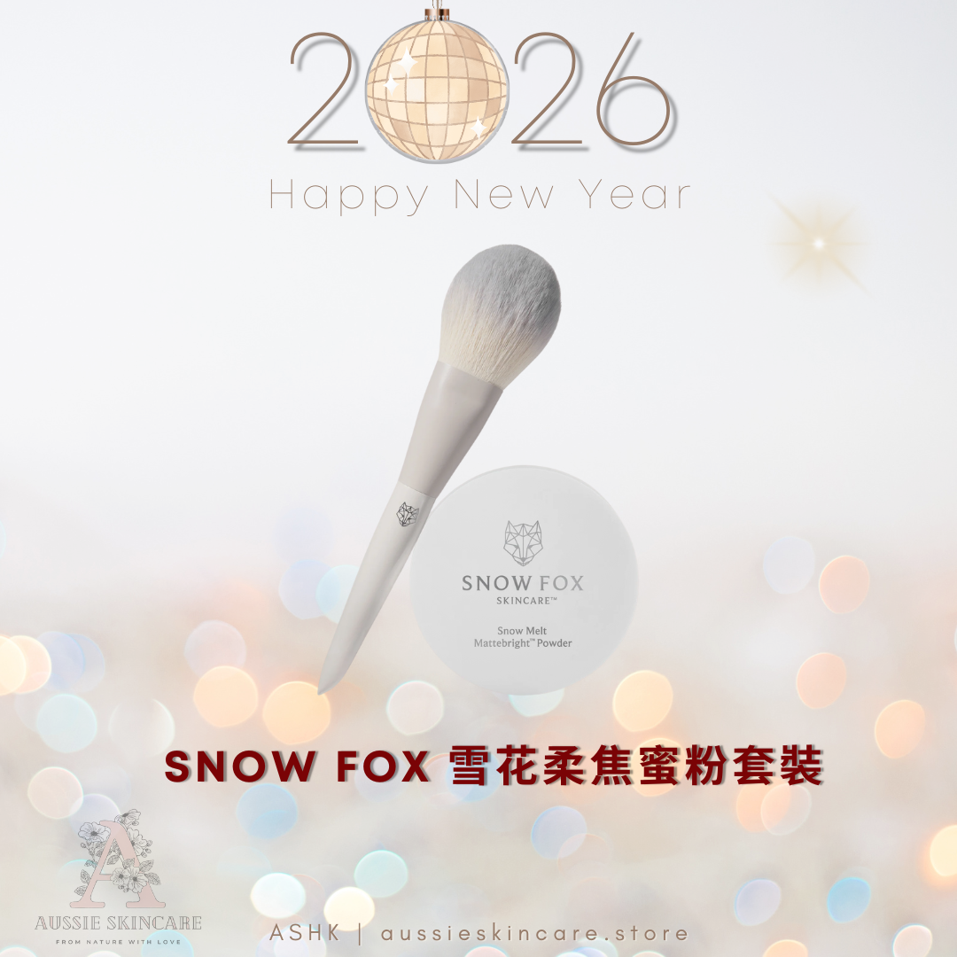 [組合優惠] SNOW FOX 雪花蜜粉套裝 ***不參與買滿即賞 / 其他任何優惠*** 套裝包括: SNOW FOX Snow Melt Mattifying & Setting Powder 極幼雪花柔焦蜜粉 (附有粉撲) 5.5g https://aussieskincare.store/i/XlEg66gAA SNOW FOX Fox Tail Loose Powder Brush 鬆鬆狐尾蜜粉掃 https://aussieskincare.store/i/QfPUd6gAA +++++++++++++++++++++++++++++++++++++++++++++++++ 超滑微晶粉末無縫融入肌膚,填補毛孔、平滑紋理,呈現輕盈柔霧妝感。添加5α Avocuta®及BRIGHT Oléoactif®,強化控油、亮白及抑制黑色素,實現化妝同時護膚 控油持久效果:長時間減少油光,保持肌膚清爽不油膩 柔焦效果:即時縮小毛孔,平滑肌膚質感,撫平紋理,讓肌膚看起來更光滑細緻 雙效功能:可作為定妝粉或補妝產品,打造霧面效果 不堵塞毛孔:質地極細,輕盈服貼,無結塊不浮粉,無需擔心毛孔阻塞 抗氧化保護:富含維生素E,有效對抗氧化壓力,保護肌膚免受外界損害 亮白改善膚色:BRIGHT Oléoactif® 提亮膚色,改善黑斑,讓肌膚看起來更健康有光澤 用法 可用作護膚及定妝,化妝前後也適用 將少許粉末倒在蓋子,配合粉撲或蜜粉掃使用,輕輕拍/掃上肌膚 可於T zone位置加強份量,以減少油光及控油